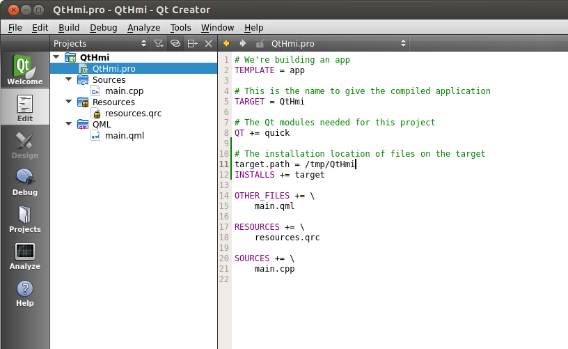 You can specify the target path for installing the HMI binary and upload the binary from Qt Creator.