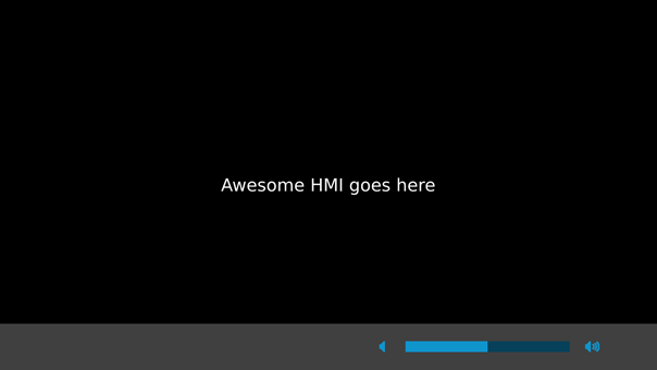 The HMI shown on the target screen prints the original message but also displays the volume slider and two control buttons along the bottom. Clicking the left button decreases the volume by 1% and moves the slider to the left. Clicking the right button increases the volume by 1% and moves the slider to the right. Tapping the slider sets the volume to the exact level based on the location. For instance, tapping it in the middle sets the volume to 50%.