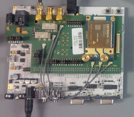 The picture above shows a Gemalto modem interface board with a connection (top right) leading out to a powered USB hub (not shown) for connecting to the main board's USB port (not shown).