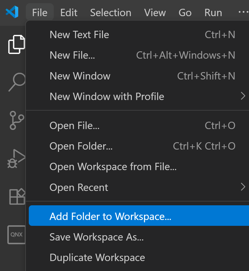 - In VS Code, add the selected Momentics project to the VS Code workspace using