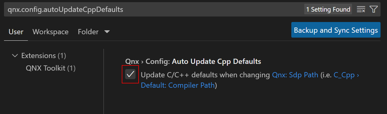 Currently, the QNX Toolkit integrates only with the C/C++ extension from Microsoft. Refer to the C++ extension settings reference and IntelliSense for cross-compiling pages in the VS Code documentation for details.