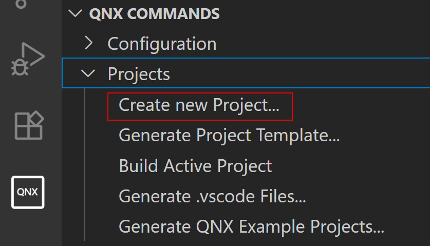 - Click the QNX extension icon on the Primary Side Bar to open the QNX menu.