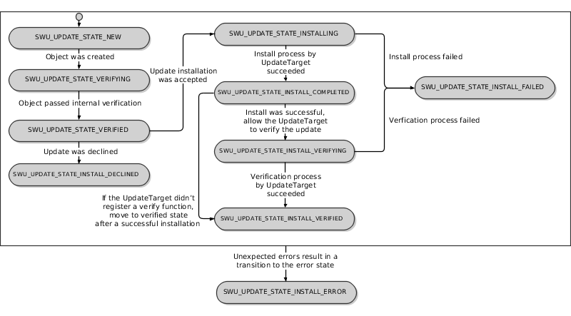 Each Update object contains a state machine that drives the software update process. The machine's state-transition diagram looks like this: