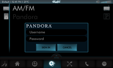 If you're accessing Pandora Radio for the first time since starting your system, you'll be prompted for authentication credentials:
