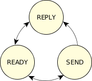 When a message is received, the server goes into the READY state, and is capable of running. If it happens to be the highest-priority READY process, it gets the CPU and can perform some processing. Since it's a server, it looks at the message it just got and decides what to do about it. At some point, the server will complete whatever job the message told it to do, and then will "reply" to the client.