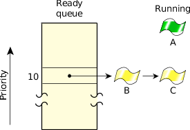 Figure 1. FIFO scheduling. Thread A runs until it blocks.