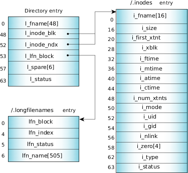 For these files, a portion of the directory entry is moved into the /.inodes file.