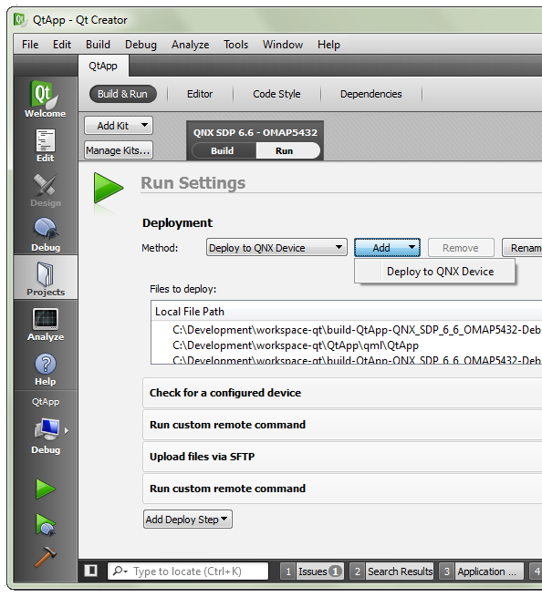 This step makes Qt Creator run the blackberry-nativepackager command as a build step.
