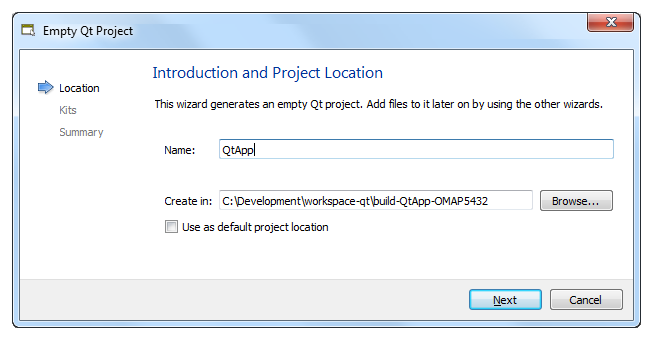 The first step in creating a Qt App is to create a project in Qt Creator.