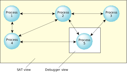 In complicated systems, the information provided by standard debugging programs may not be detailed enough to solve the problem. Or, the problem may not be a bug as much as a process that's not behaving as expected. Unlike the SAT, debuggers lack the execution history essential to solving the many complex problems involved in "application tuning." In a large system, often consisting of many interconnected components or processes, traditional debugging, which lets you look at only a single module, can't easily assist if the problem lies in how the modules interact with each other. Where a debugger can view a single process, the SAT can view all processes at the same time. Also, unlike debugging, the SAT doesn't need code augmentation and can be used to track the impact of external, precompiled code.