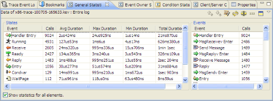 When selected, the Include Idle Threads icon () updates the statistics to include the time spent in the idle threads.