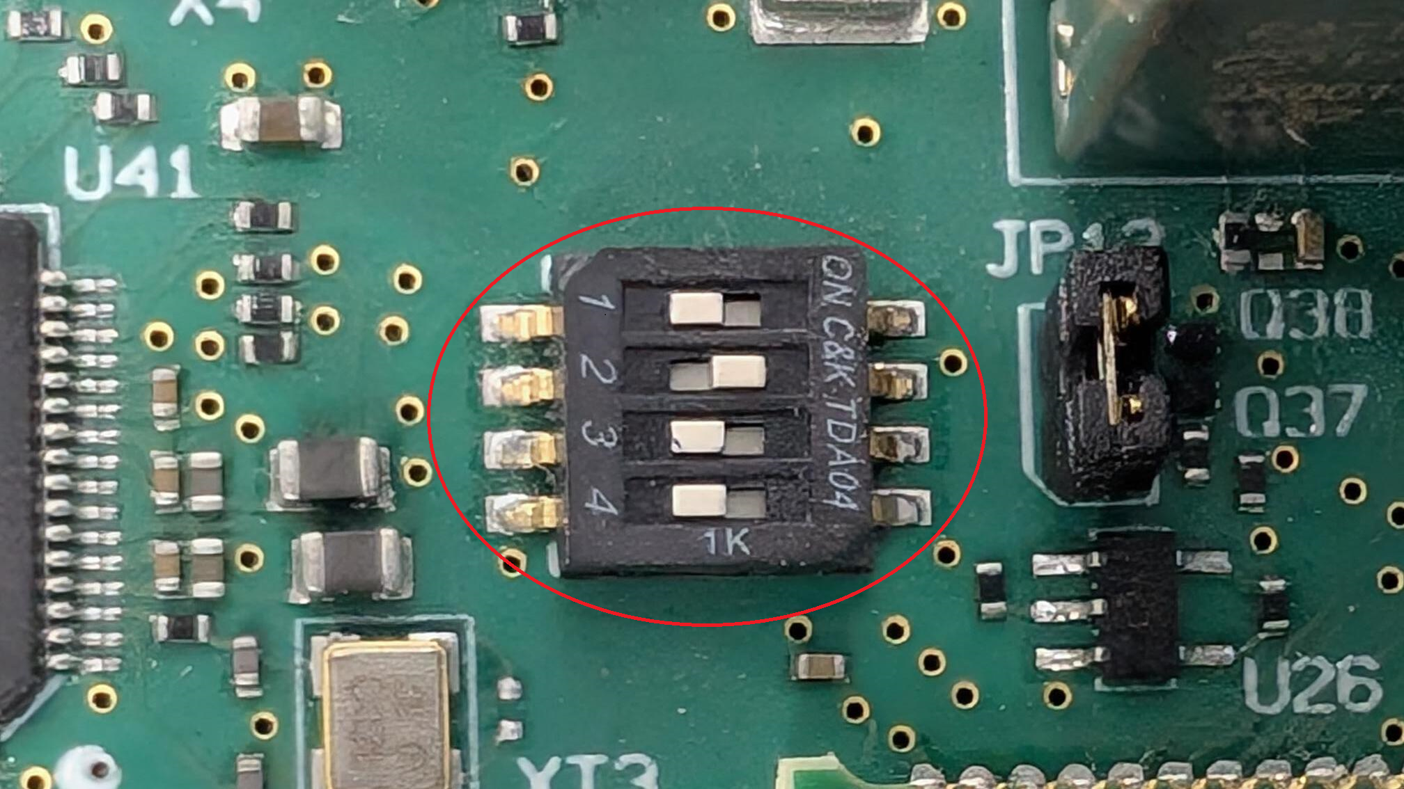 Figure 1DIP switch configuration for the phyBOARD-NASH to boot from eMMC