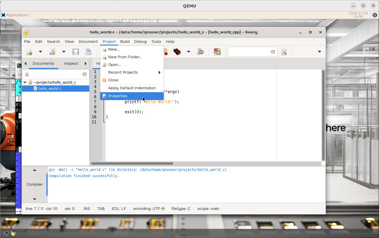 Select Project > New. Name the project hello_world_c: