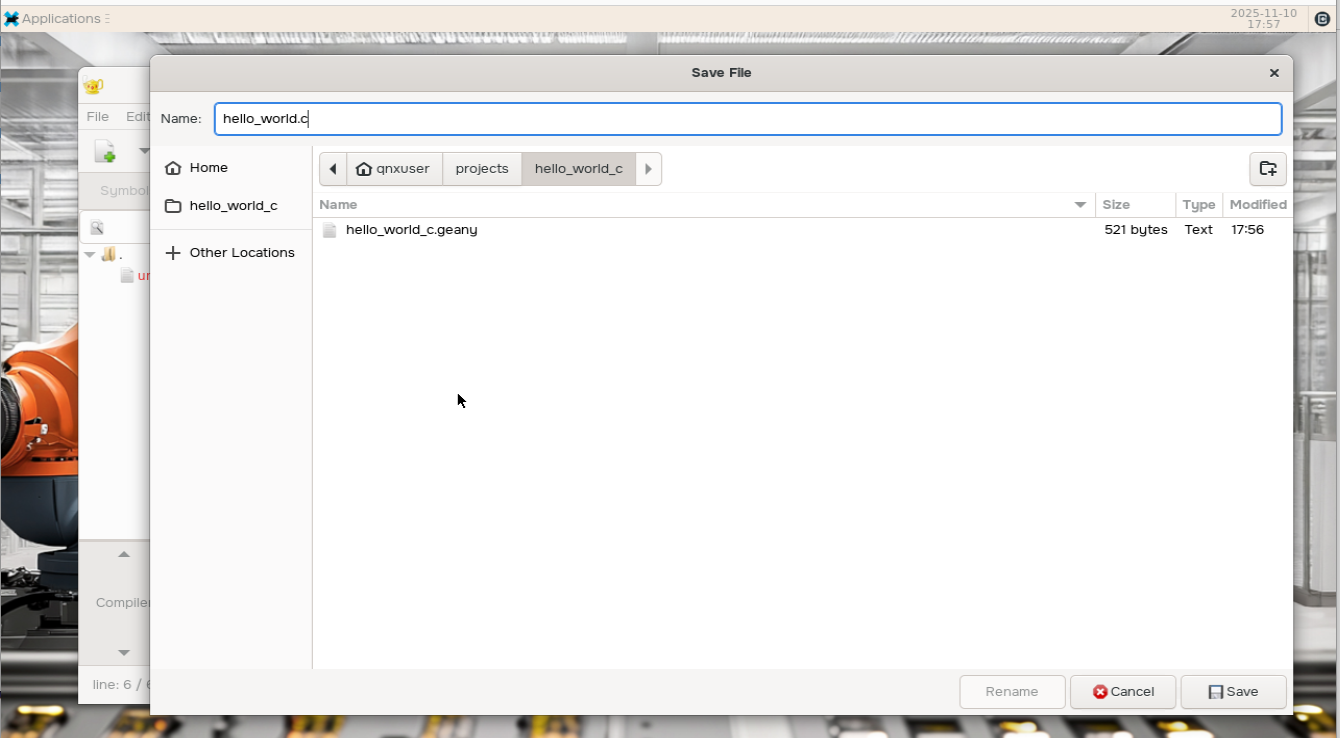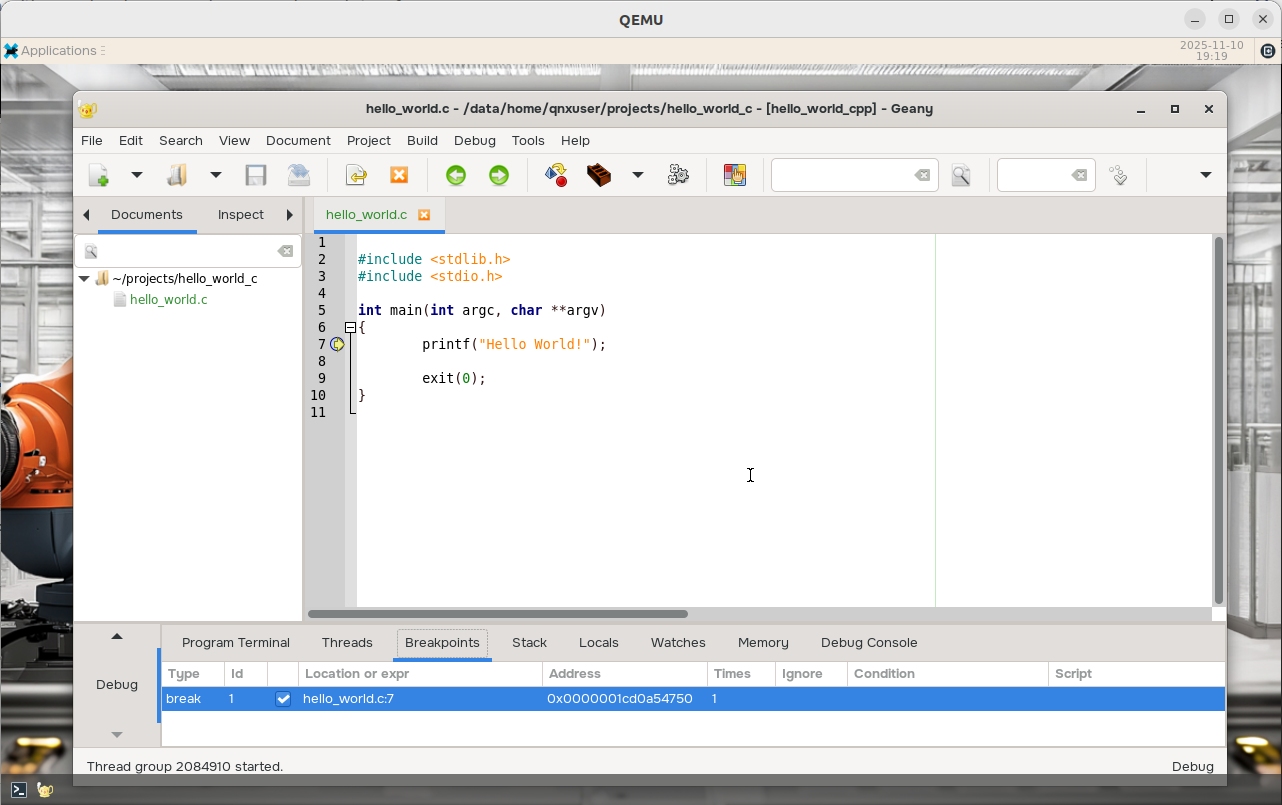 Enter the full path to the hello_world executable, then click OK: