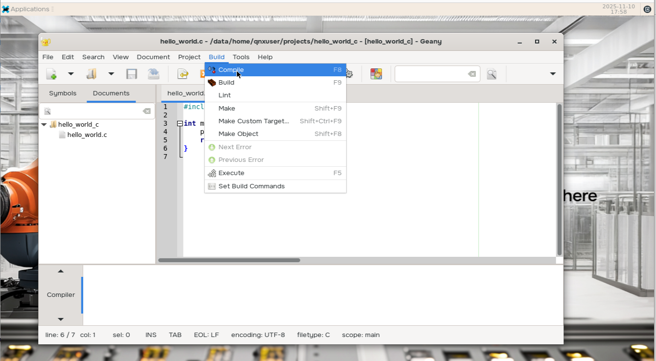 Select Build > Compile to compile the source: