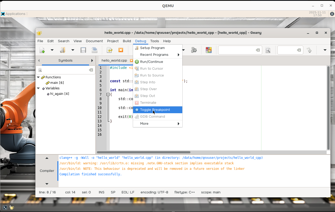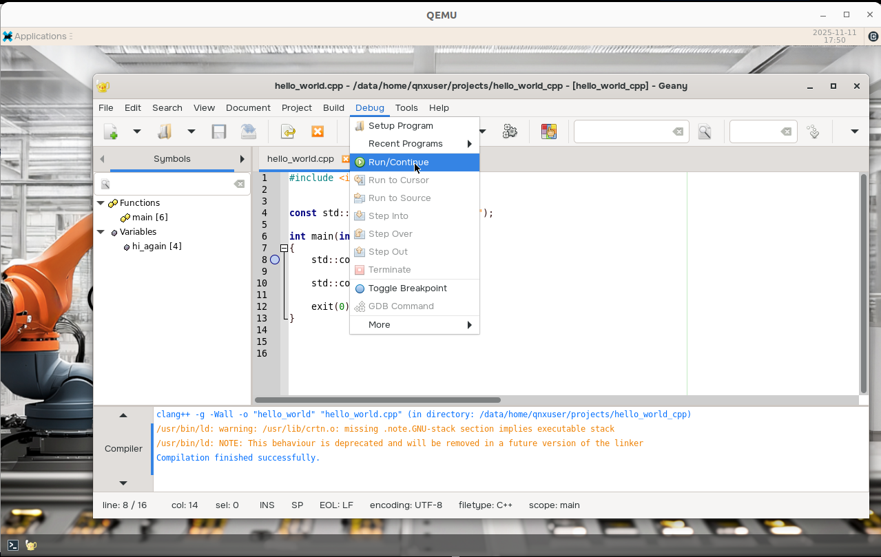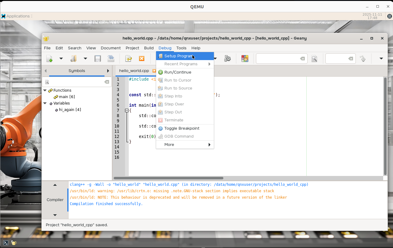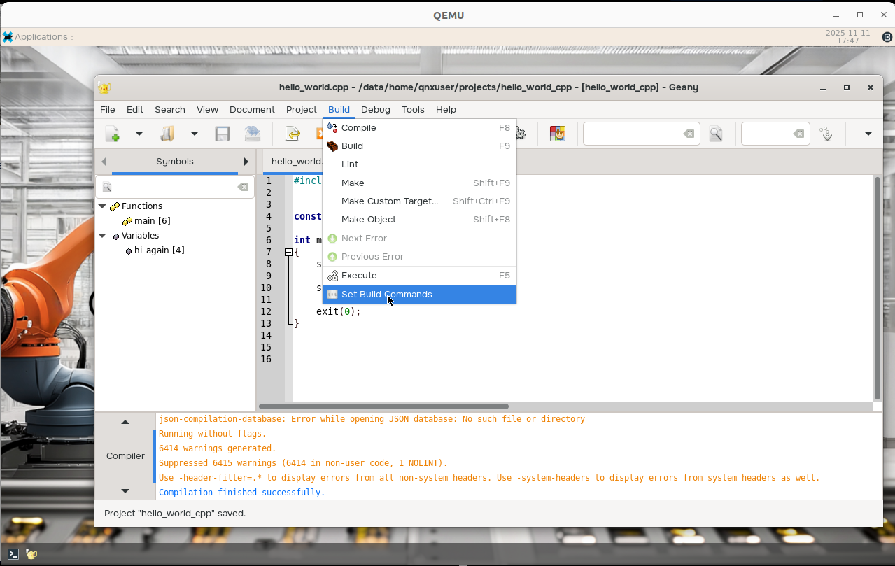 Next, try debugging the Hello World sample. Select Build > Set Build Commands.