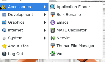 This menu contains system utilities, including the file manager and terminal.