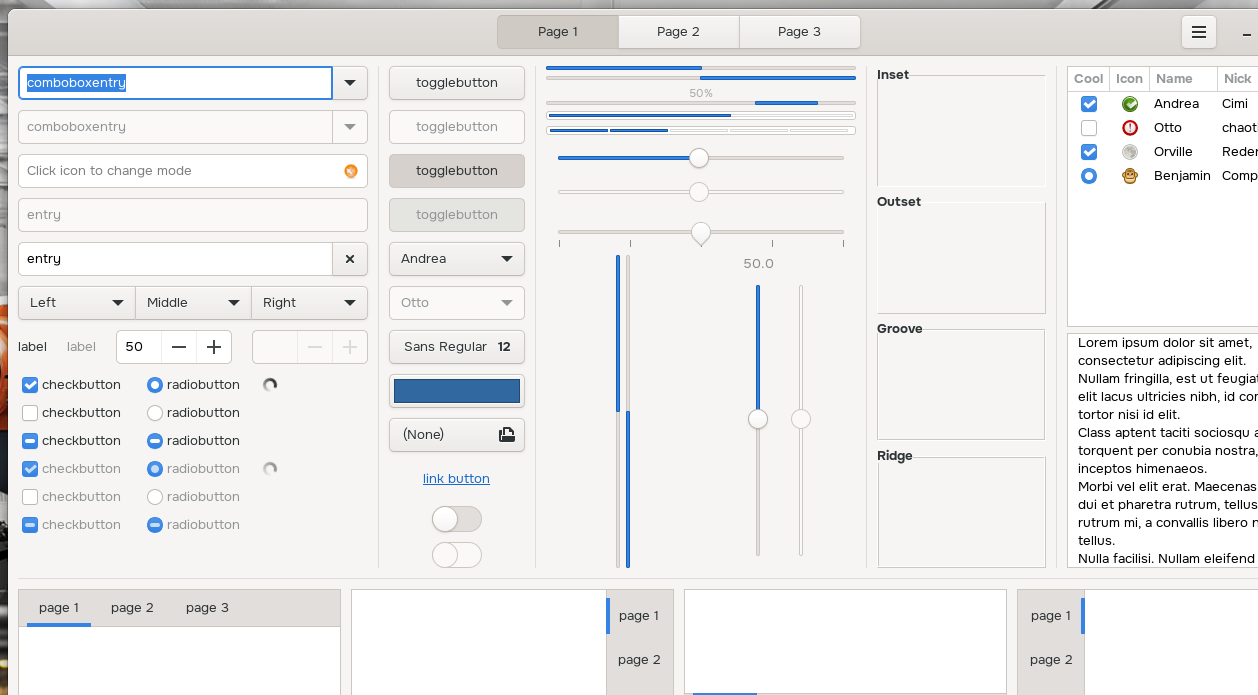 A GTK+ 3 demo application that demonstrates the different widgets (UI controls) that are available in the GTK+ 3 toolkit.